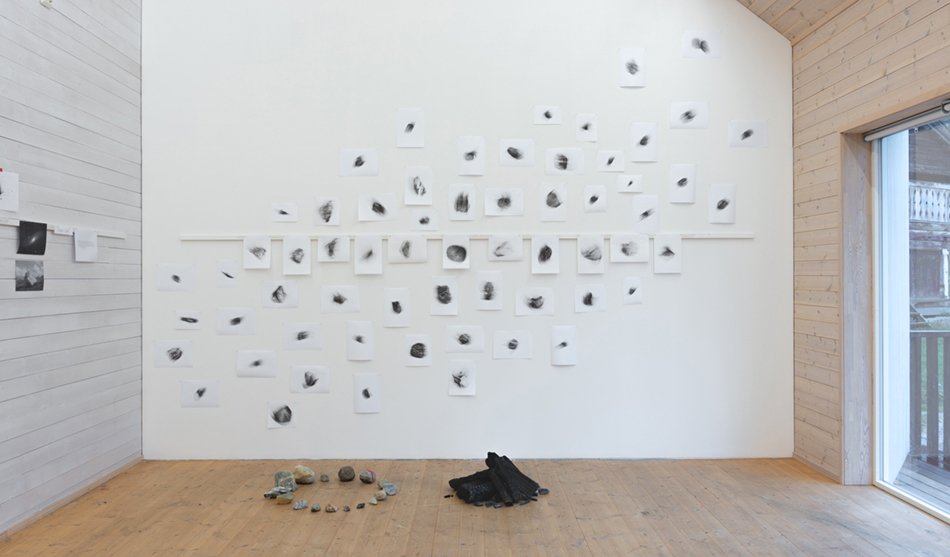 Mineral Dream interrogates the fragility of dreams when severed from darkness. Through charcoal drawings, I trace stone forms found in the landscape—their edges blurred like half-remembered utupë, resisting focus. Sound installations weave nocturnal field recordings (wind in birch trees, owl calls, river whispers) with spoken fragments of local dream narratives, gathered in conversations with inhabitants. These testimonies become echoes of the Yanomami belief: that to dream is to know, and without night, we risk losing more than sleep.