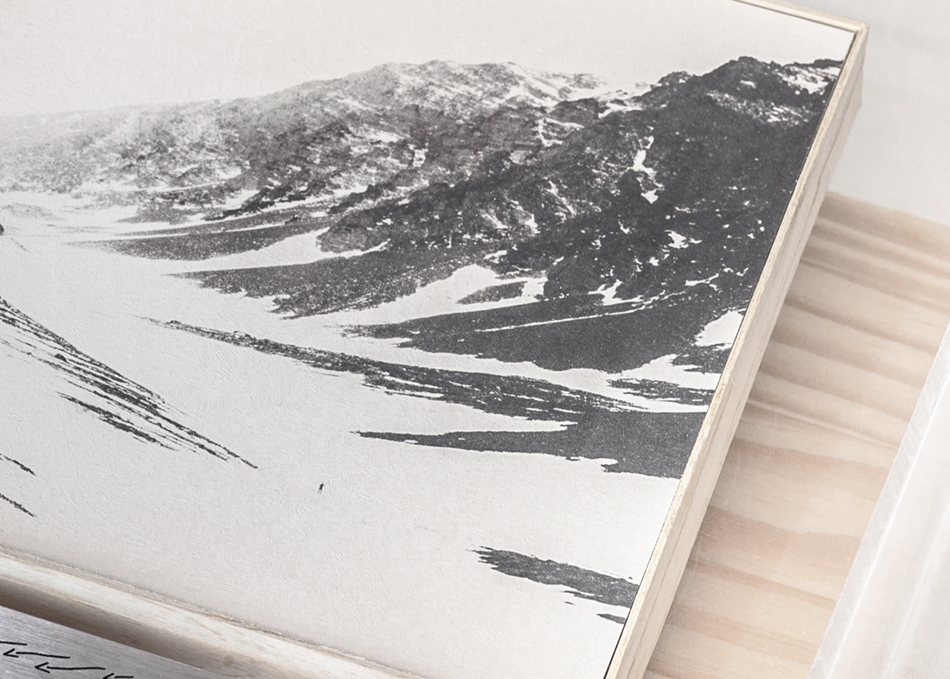 Pigment on manipuled paper, brushed steel plate, wood and acrylic