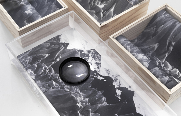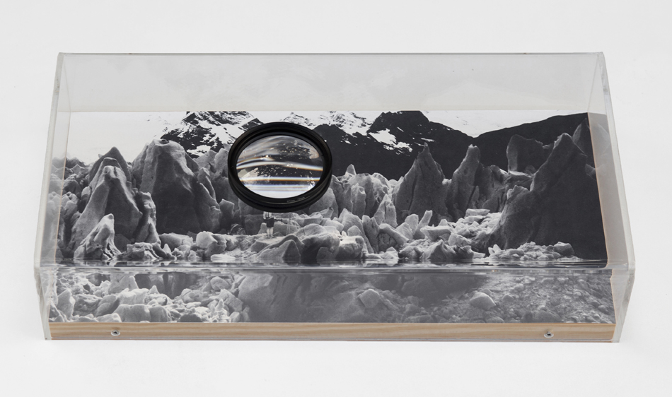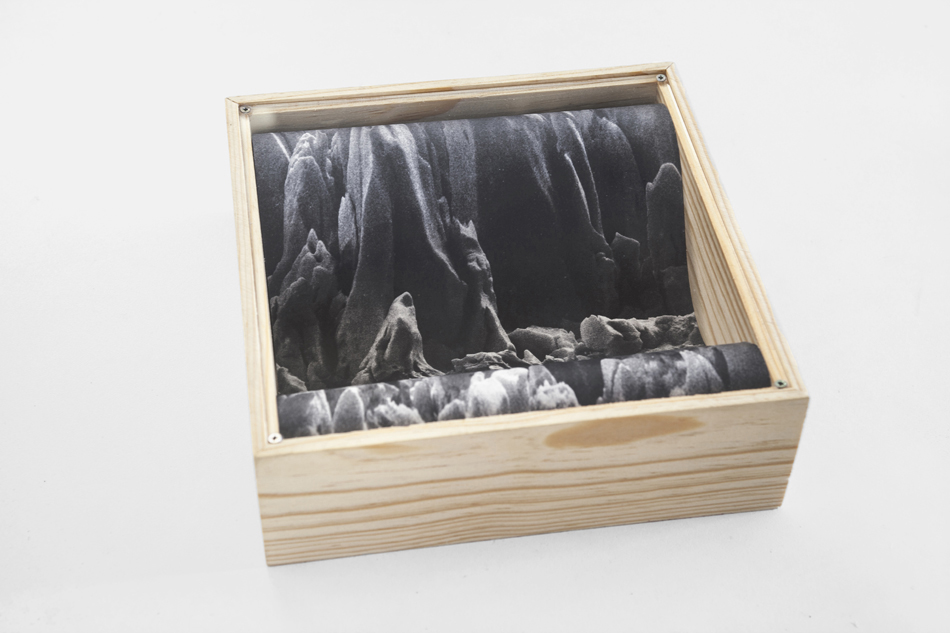 The elaboration of this work introduced a new narrative stage in the conception of the following projects, as in 'The Invisibility of Huge Things' 2018. The creation of a character that transits all the time between the fictional and the documentary works as a strategy in the construction of new optical and sound devices. This process conceived the trajectory of an inventor, identified only by the initials T. H., who created a device capable of identifying large geographic areas susceptible to large oscillations and sudden changes in their original geological formation. The manipulation of the photograph takes place in several levels of the imagetic surface; bending, stretching or acting directly on the image.