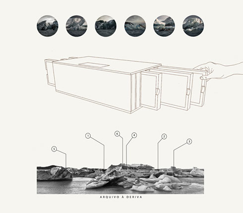 A landscape carrying a vast memory encrusted in huge plates of ice that slowly slide through a lake at the foot of a volcano. From these images captured in Jökulsárlón (Iceland), I designed a box / archive, in which drawers slide sideways to the wish of the manipulator.
