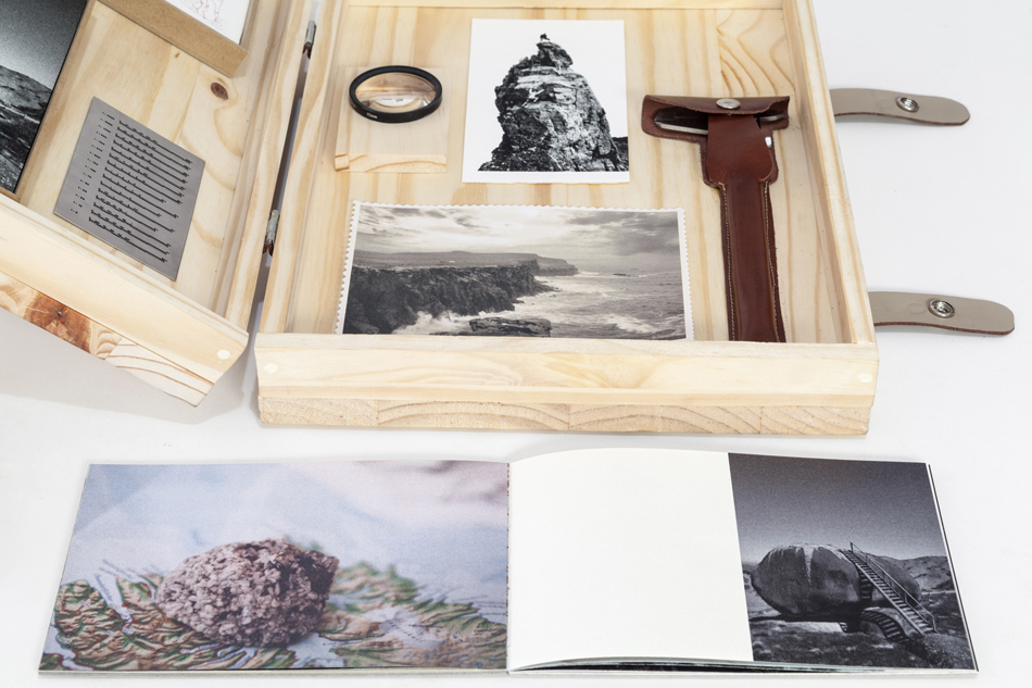 The immensity of the different magnitudes between man and nature can be perceptible in an experience of travel, trail, climbing or something similar. This move action however is always reconfigured by becoming a photographic or pictorial image. This object book arises in an attempt to re-scale the proportions of the scales between the human being and the landscape, where manipulation becomes the action of another fictional experience.